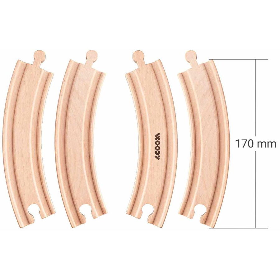 Koleje WOODY Kulaté koleje dlouhé 4ks 4 ks kolejí pro rozšíření vaší vláčkodráhy Kulaté Věk 2+ Délka 17 cm