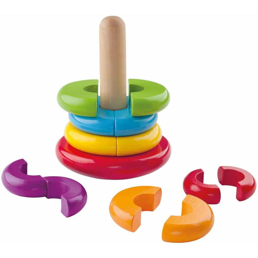 Dítě si musí nejprve půlkruhy spojit a pak je navléknout na tyčku