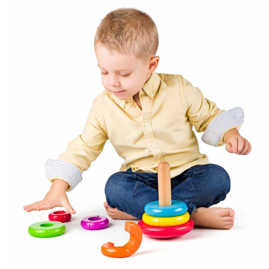 Úkolem dítěte je navléknout kroužky od největšího k nejmenšímu
