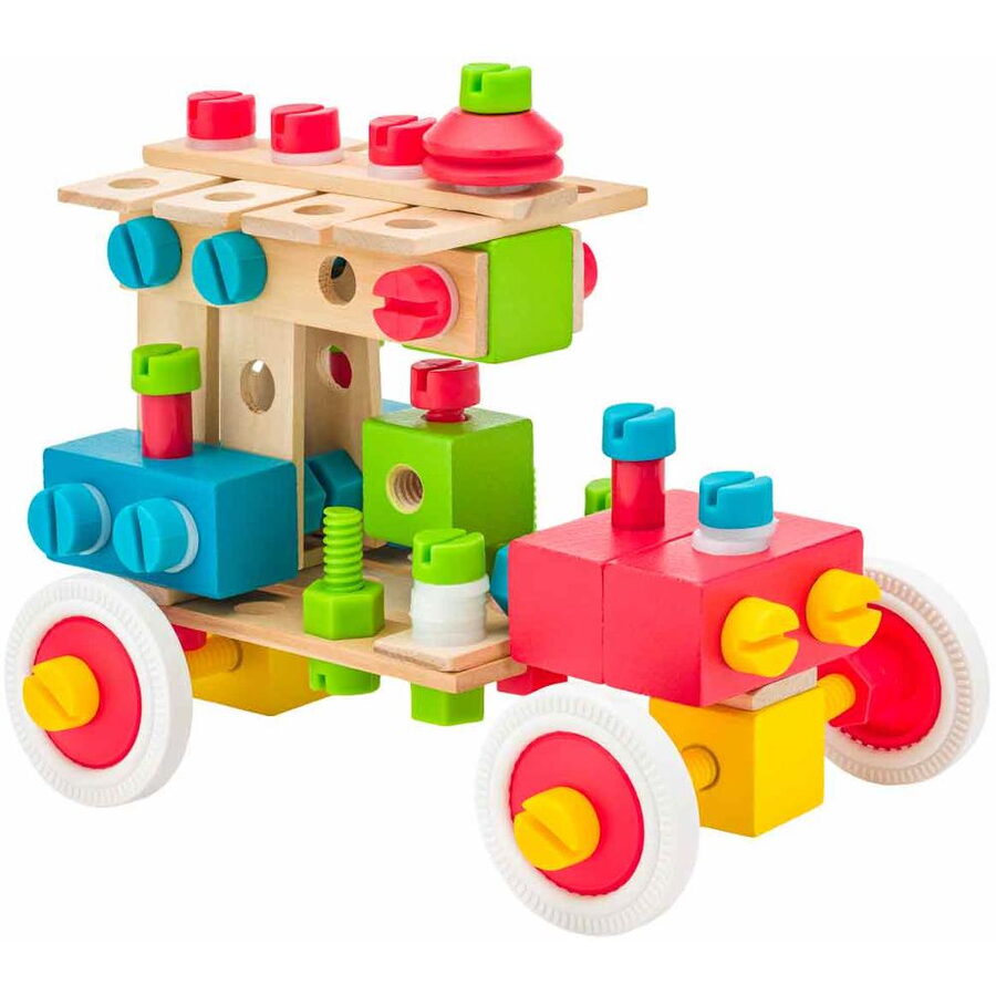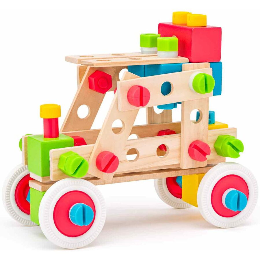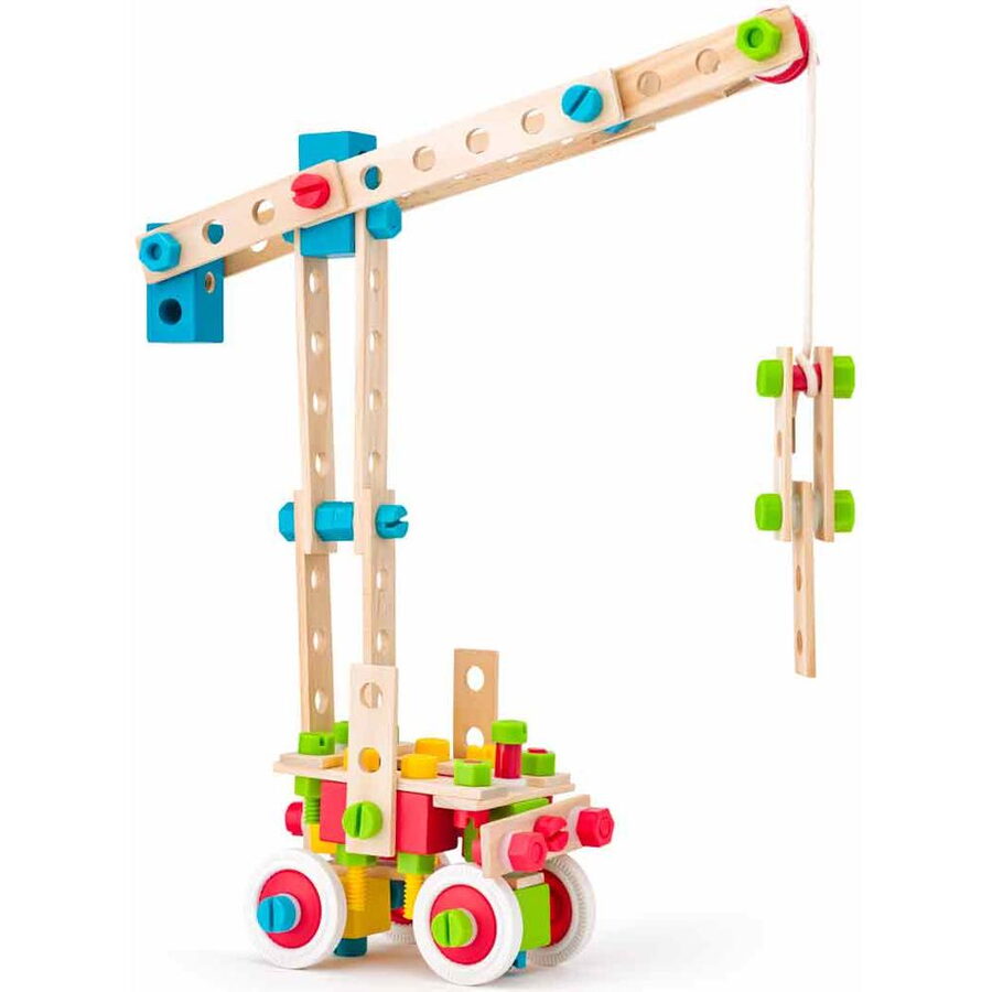 Montážní kostky a spojky jsou vyrobeny ze dřeva