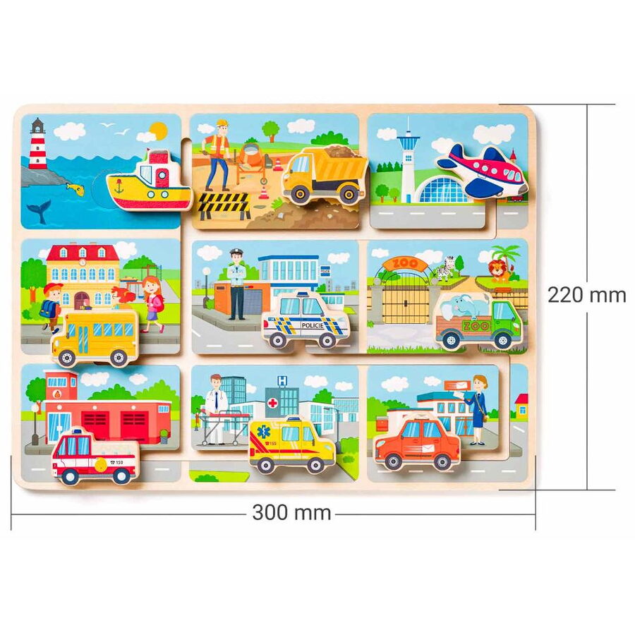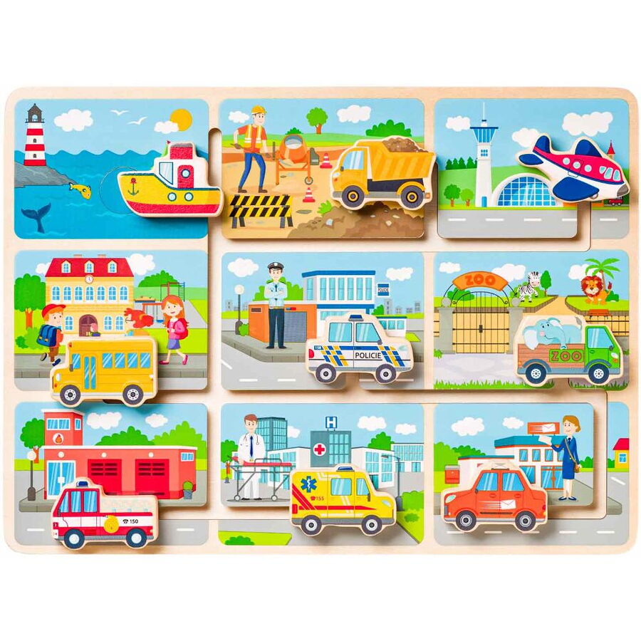 Úkolem dítěte je umístit dopravní prostředky do prostředí, do kterých patří