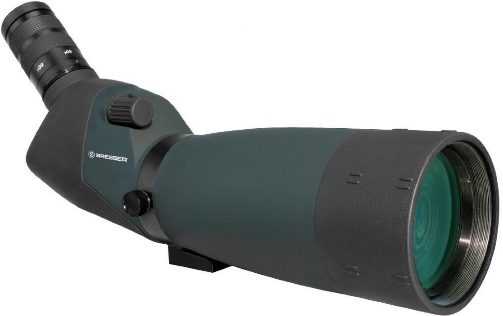 Optická soustava obsahuje vícečlenný achromatický objektiv, hranolový systém pro pozorování pod úhlem 45° a okulár s plynule měnitelným zvětšením. Všechny optické prvky jsou vyrobeny z optického skla velmi dobré kvality a jsou opatřeny antireflexními vrtsvami Bresser - FMC (Fully Multi Coating). Tyto vrstvy zlepšují schopnost přenosu světla a tím zvyšují skutečnou světelnost dalekohledu.