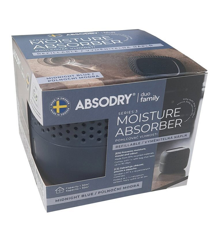 Součástí je sáček s krystaly absorbující vzdušnou vlhkost