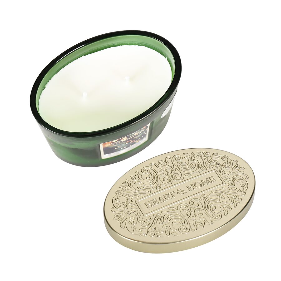 Zpříjemněte si domov vůněmi od Heart & Home. Jsou vyrobeny z přírodní směsi sójového vosku, který je šetrný k životnímu prostředí. Svíčka elipsa se 2 knoty rozzáří a provoní váš domov až na 40 hodin. Hmotnost: 220 g