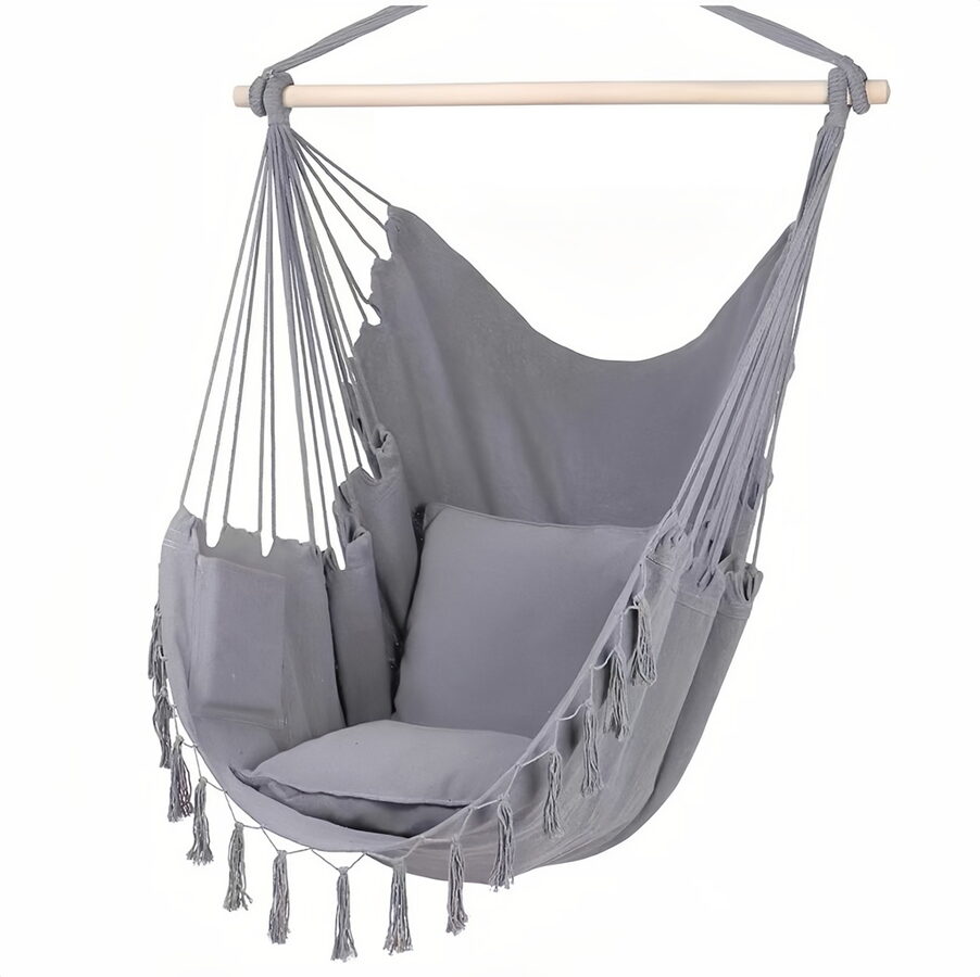 Pohodlí, relaxace a zábava! Závěsné houpací křeslo je ideálním místem pro relaxaci po náročném dni i pro klidné chvíle s oblíbenou knihou. Díky příjemnému bavlněnému materiálu nabízí maximální pohodlí a přirozeně se přizpůsobí tvaru těla. Jemné houpání navozuje pocit uvolnění a pohody, ať už ho umístíte na terasu, do zahrady, nebo do interiéru. Elegantní provedení a vzdušný design z něj dělají nejen pohodlný, ale i stylový doplněk, který dodá každému prostoru nádech útulnosti a lehkosti. Hlavní vlastnosti: vyrobeno ze 100% bavlnypohodlné a bezpečné místo pro odpočinekelegantní šedý designvhodné pro děti od 3 letnosnost 80 kg