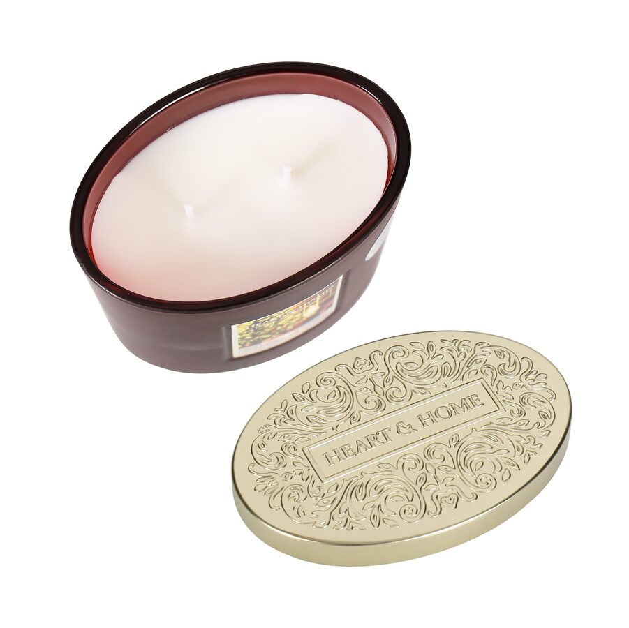 Zpříjemněte si domov vůněmi od Heart & Home. Jsou vyrobeny z přírodní směsi sójového vosku, který je šetrný k životnímu prostředí. Svíčka elipsa se 2 knoty rozzáří a provoní váš domov až na 40 hodin. Hmotnost: 220 g