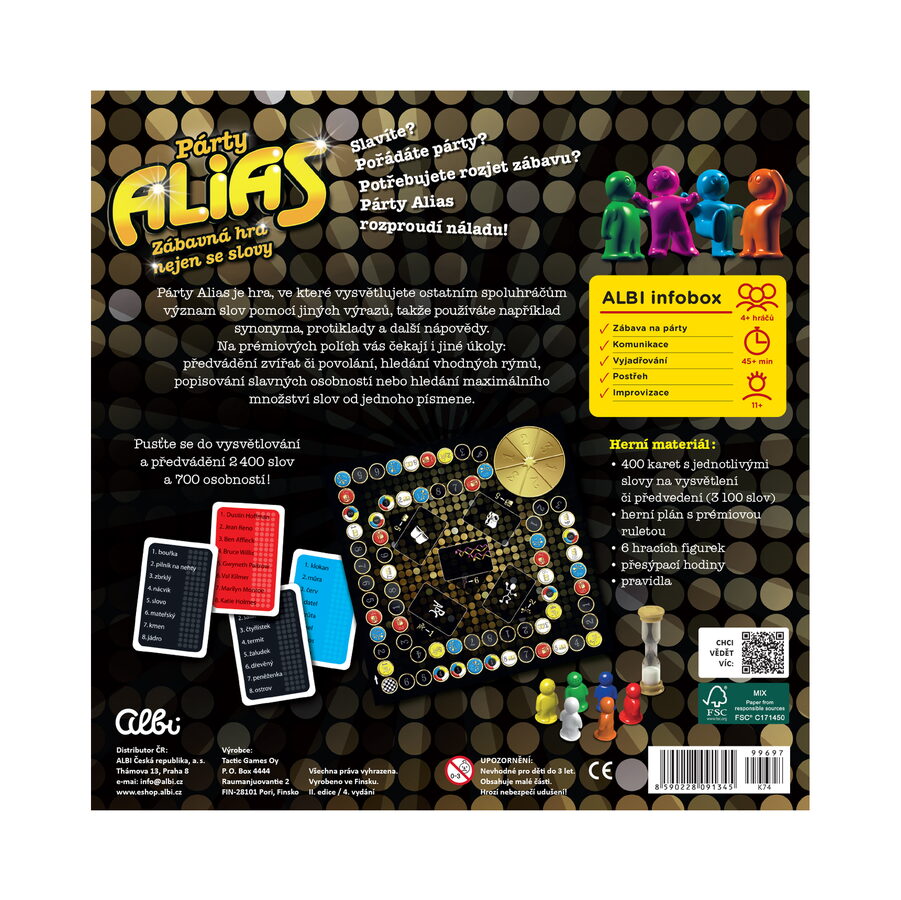V této párty hře vysvětlujete ostatním spoluhráčům význam slov pomocí jiných výrazů, takže používáte například synonyma, protiklady a nápovědy. Na prémiových polích na vás čekají i jiné úkoly: předvádění zvířat či povolání, hledání vhodných rýmů, popisování slavných osobností nebo hledání co nejvíce slov na jedno písmeno. Vhodné pro skupiny 4 - 20 hráčů od 11 let. Hra obsahuje: 400 karet (3100 slov), 1 herní plán, 6 figurek, 1 přesýpací hodiny.