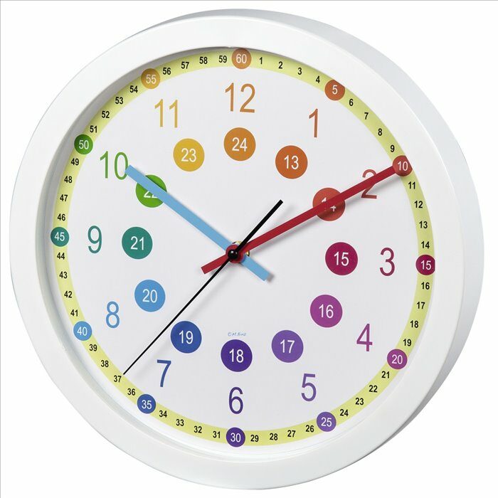 Dětské nástěnné hodiny Hama Easy Learning jsou perfektní pomůckou pro vaše děti. Ciferník s arabskými číslicemi je přehledně barevně rozdělený na hodiny v 12hodinovém i 24hodinovém formátu času. Číselně zobrazené jsou také vteřiny, takže bude pro vaše děti opravdu snadné naučit se určovat přesný čas. K tomu jim napomohou i barevně rozlišené hodinové ručičky.