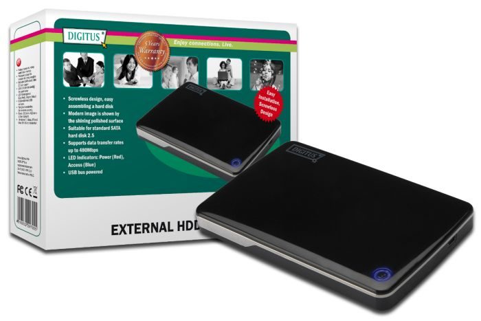 Led indikace stavu (modrá - přístup na disk, červená - napájení)