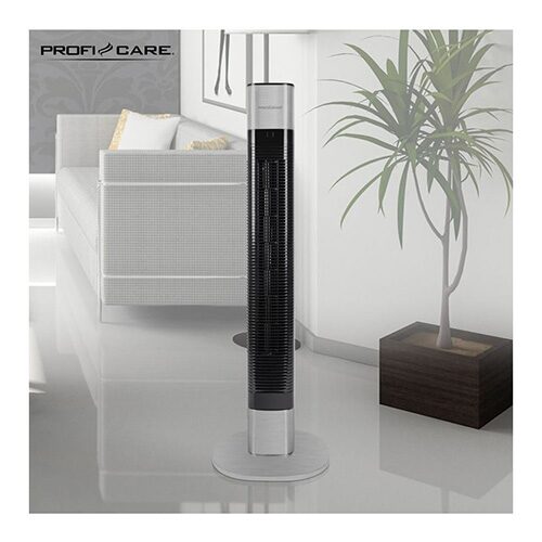 - vysoce kvalitní věžový ventilátor v elegantním designu s prvky z nerezové oceli