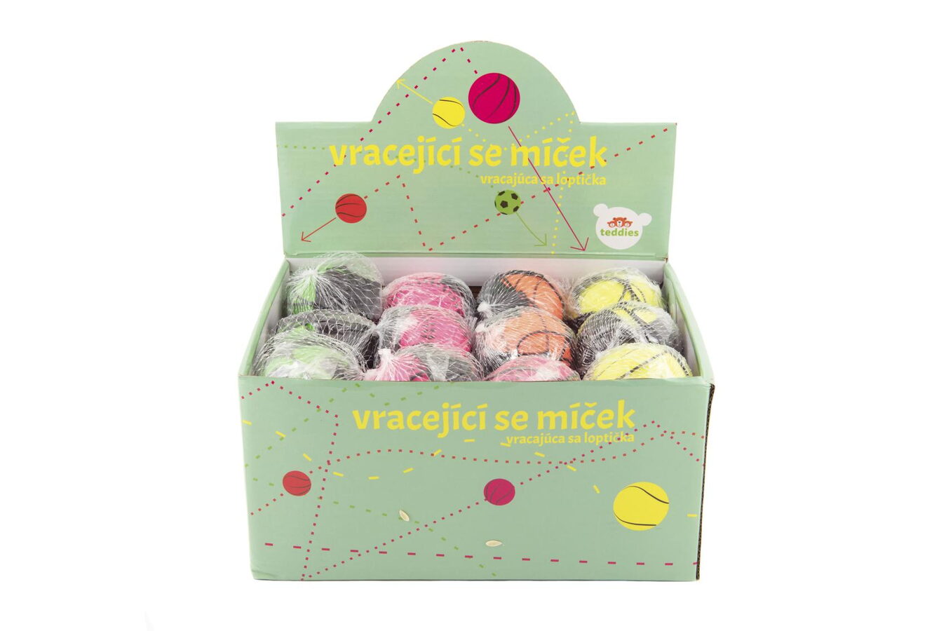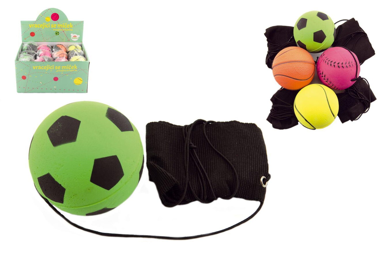 Vracející se míček je ideální hračkou pro zabavení. Míček je přivázaný na tkaničce, díky které vám míček nikdy neuletí. Můžete si s ním házet o zeď nebo o zem. Balonek ve čtyřech různých vzhledech podle druhu sportu, baleno v sáčku.