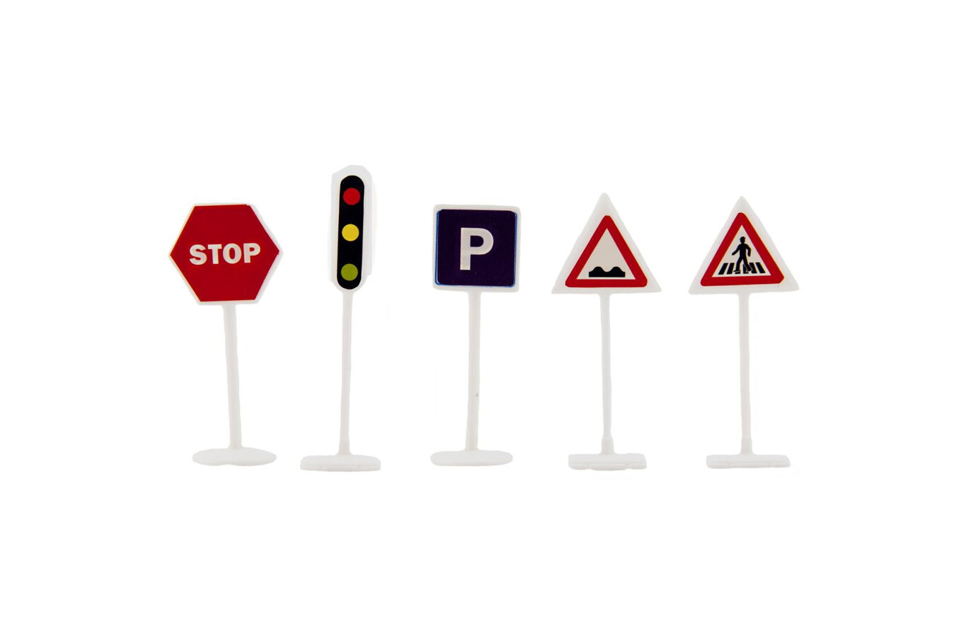 Děti se učí poznávat nejznámější dopravní značky. Zatraktivní dětem hru i výuku, jak se pohybovat v dopravním provozu. Tato sada značek nesmí chybět žádnému malému účastníkovi provozu! Balení obsahuje 14ks dopravních plastových značek o výšce 5 cm.