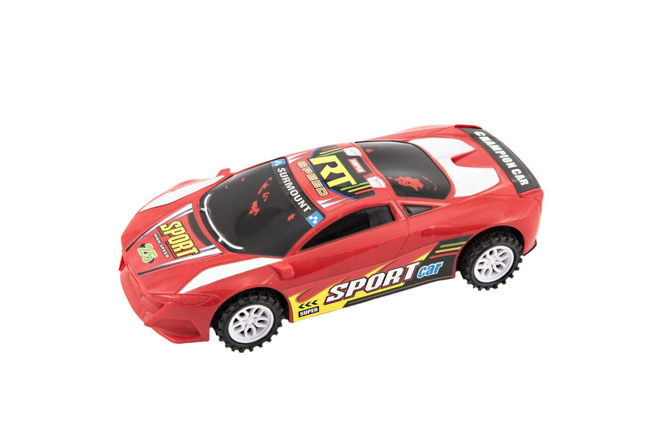 Plastový model závodního auta, který zaručeně potěší každého malého milovníka aut. Autíčko jezdí na setrvačník a velikost je 20 cm.