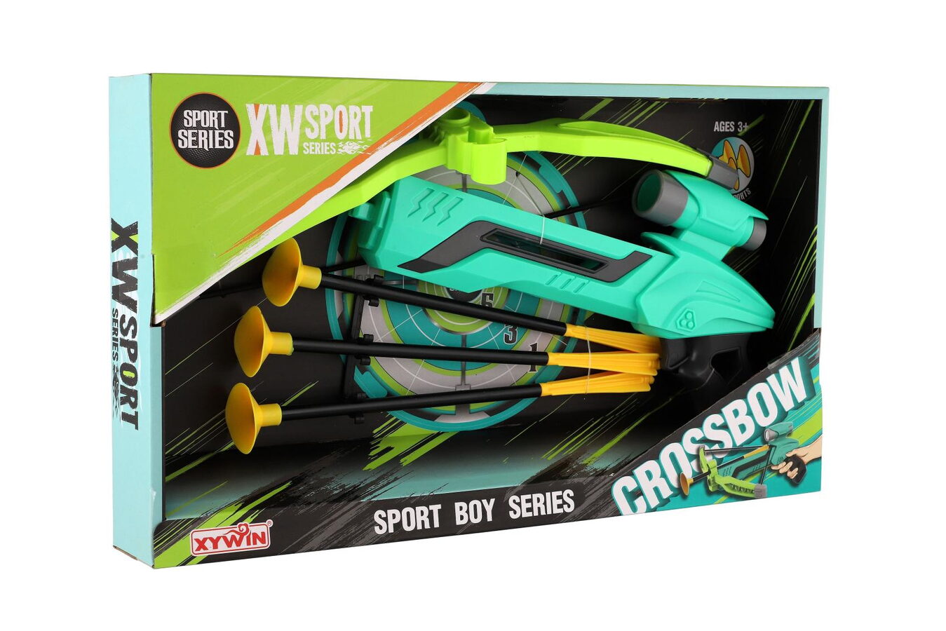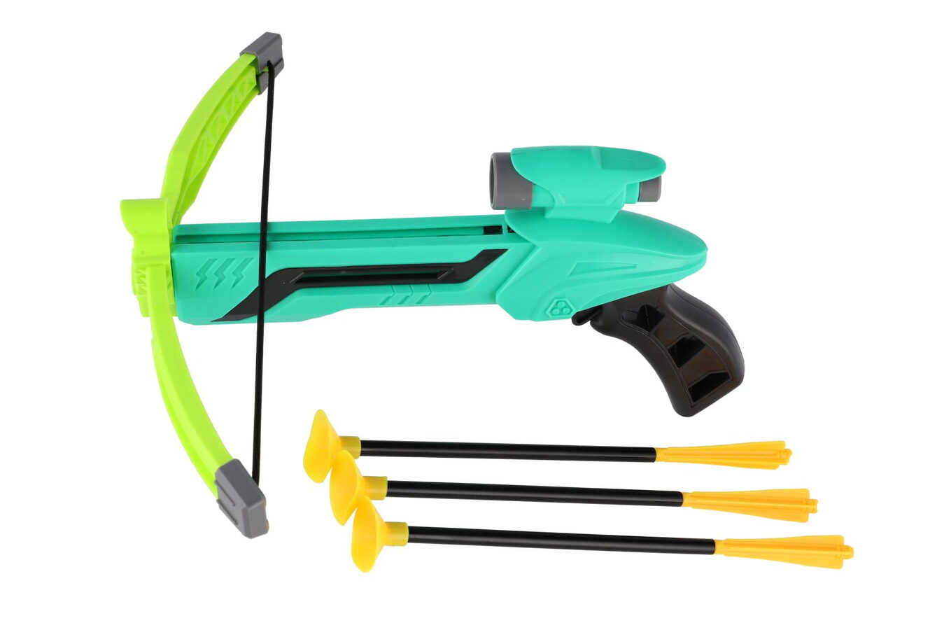 Pro všechny milovníky zbraní je tato sada ideální. Plastová kuše se zaměřovačem. Otestuje své dovednosti ve střelbě. Součástí balení jsou 3 šípy s přísavkou.