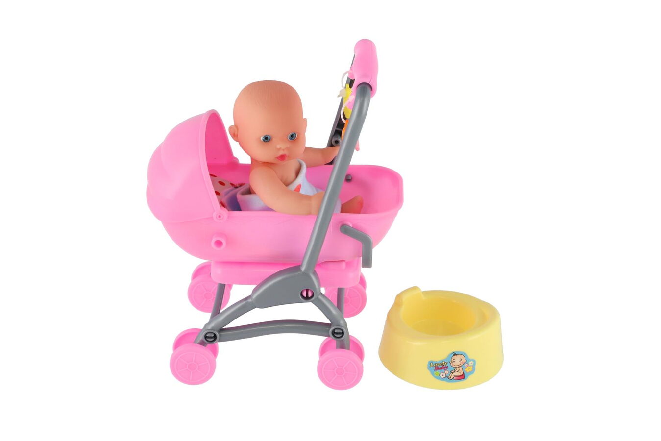 Skvělý tip na dárek pro malé holčičky, které si tak mohou vyzkoušet mateřství. Sada obsahuje vše potřebné pro výchovu malých dětí, včetně panenky, kočárku a nočníku.