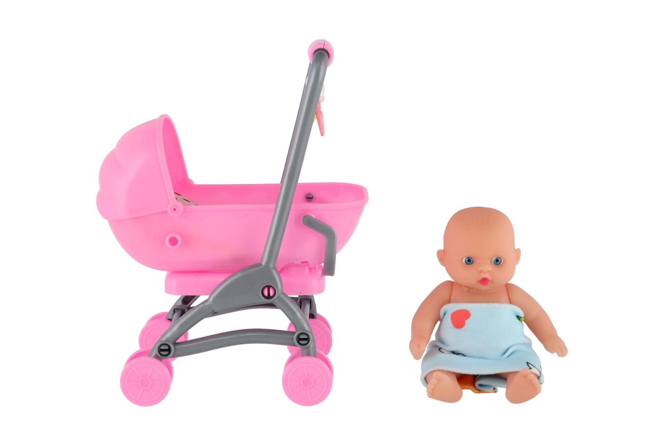 Teddies Miminko/panenka kloubová 12cm v kočárku 10x14x18cm plast s doplňky v sáčku