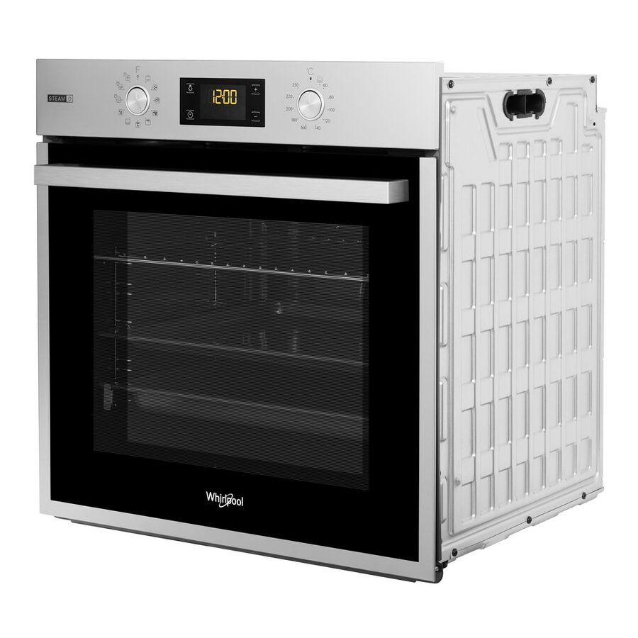Vestavná trouba Whirlpool OAS KN8V1 IX v nerezové barvě je zařazena do energetické třídy A+. Nabízí horkovzdušné pečení s kombinací pečení s párou. Ovládá se pomocí 2 zamačkávacích knoflíků a bílého grafického displeje. Vnitřní objem trouby dosahuje 71 l. Dvířka trouby jsou vybavena dvojitým sklem a jejich vnitřní strana je celoskleněná, díky čemuž se snadno udržují v čistotě. Vestavná trouba Whirlpool OAS KN8V1 IX nabízí několik funkcí pečení: pečení s párou, speciální funkce, horkovzdušný ohřev, statický horní + dolní ohřev i gril. Příslušenství: 1 smaltovaný rošt, 1 smaltovaný hluboký plech a 1 mělký plech.