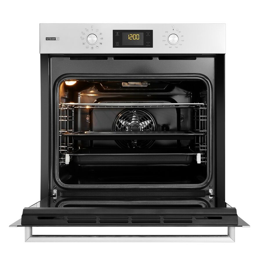 Funkce trouby: tradiční pečení, pečení s ventilátorem (je vháněn vzduch), maxi pečení, pizza, gril, turbo gril, eko vháněný vzduch, STEAM ryby, STEAM Maso, STEAM Chléb