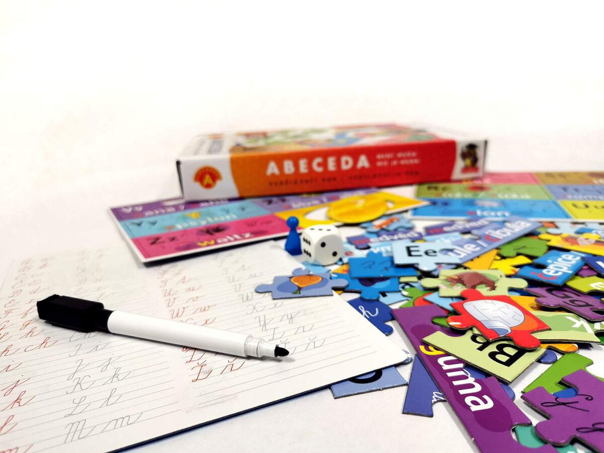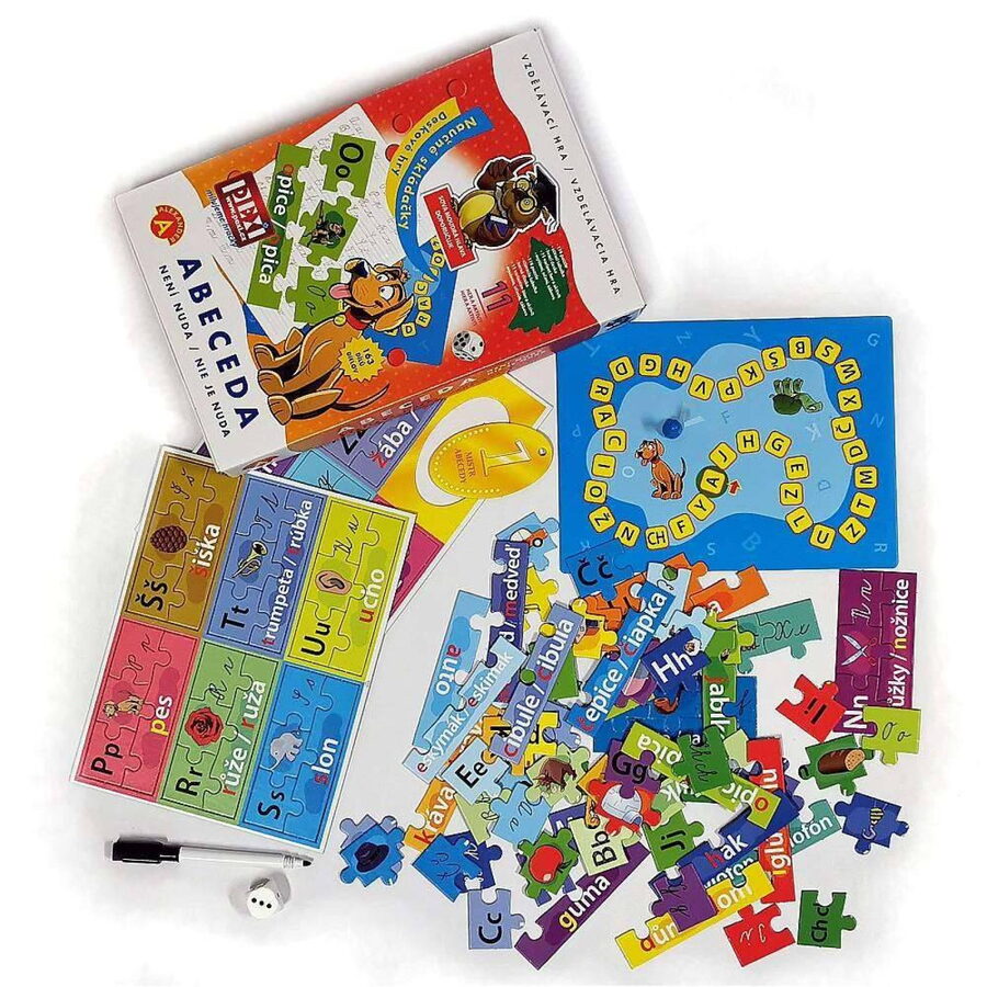 "Abeceda není věda" je skvělá zábava a zároveň učební pomůcka pro děti v předškolním věku a v 1. třídě. Balení obsahuje 29 sad puzzle, které znázorňují jednotlivá písmenka abecedy. Každá sada puzzle se skládá z obrázku, dílku s jeho názvem a dvou dílků s tiskacími a psacími písmenky. Pestré aktivity, během kterých je třeba různě uspořádat dílky, pomáhají dětem naučit se abecedu, učí je rozpoznávat písmenka, jejich pořadí v abecedě, vyhledat první písmenka ve slově a procvičují paměť a koncentraci. Přiložená stírací tabulka umožňuje opakovaně psát a mazat a procvičovat naučená písmenka i zlepšovat jemnou motoriku.