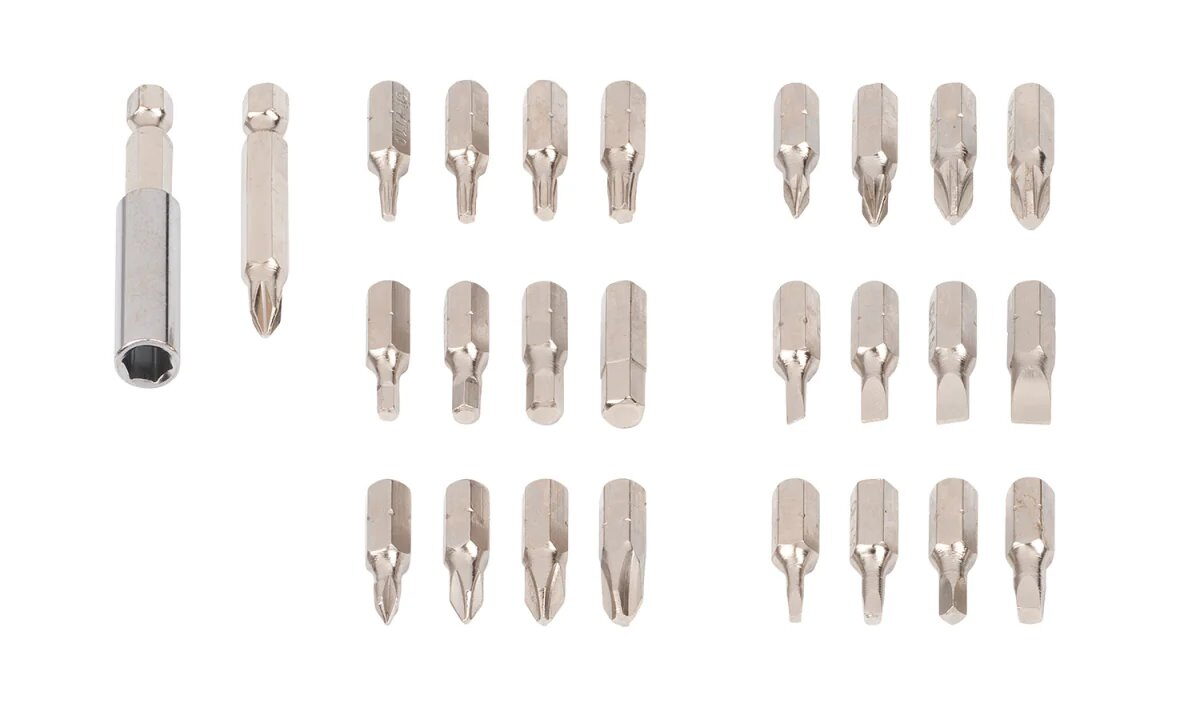 - 24× 25mm bity (T10/T15/T20/T25, SL3/SL4/SL5/SL6, PZ0/PZ1/PZ2/PZ3, PH0/PH1/PH2/PH3, H3/H4/H5/H6, S0/S1/S2/S3)