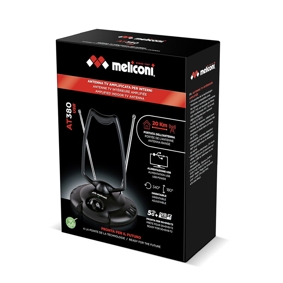 Anténa Meliconi, 881001, AT 380 USB, pokojová, LTE filtr, zisk 38 dB