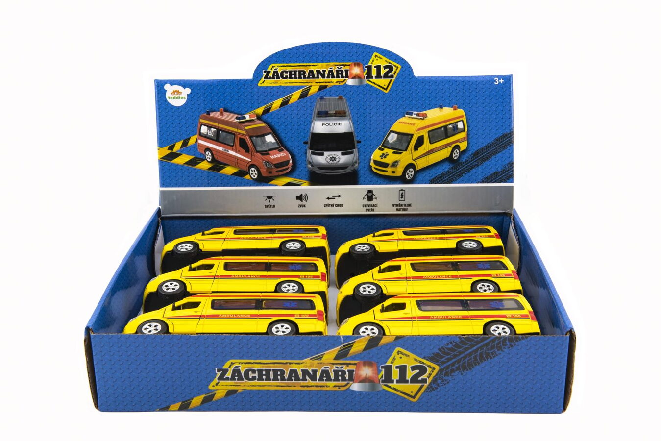 Teddies Auto ambulance kov/plast 15cm na baterie se světlem se zvukem na zpětné natažení 6ks v boxu