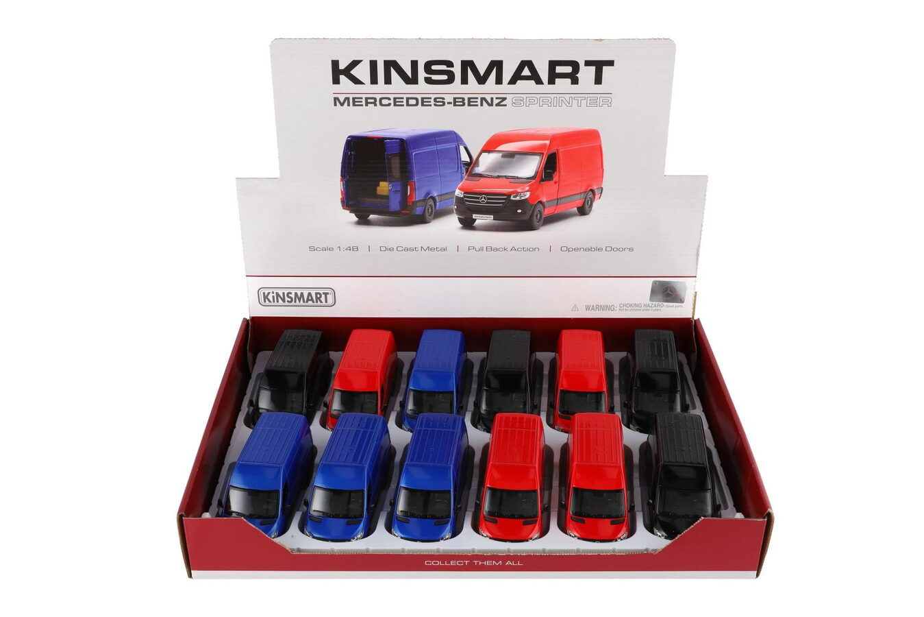 Auto/dodávka Kinsmart Mercedes-Benz Sprinter 1:48 kov/plast 12,5cm na zpětné nat. 3barvy 12ks v boxu