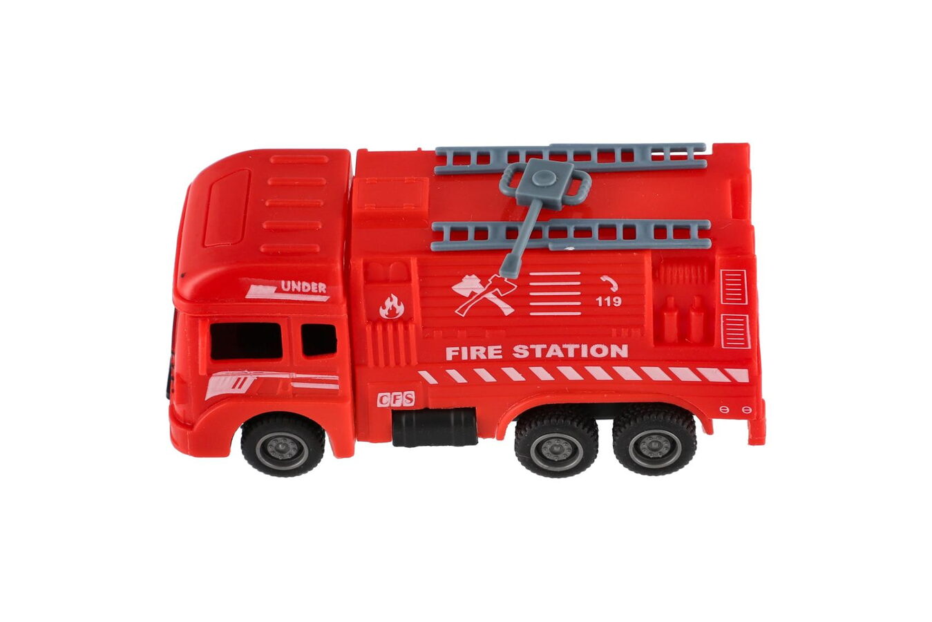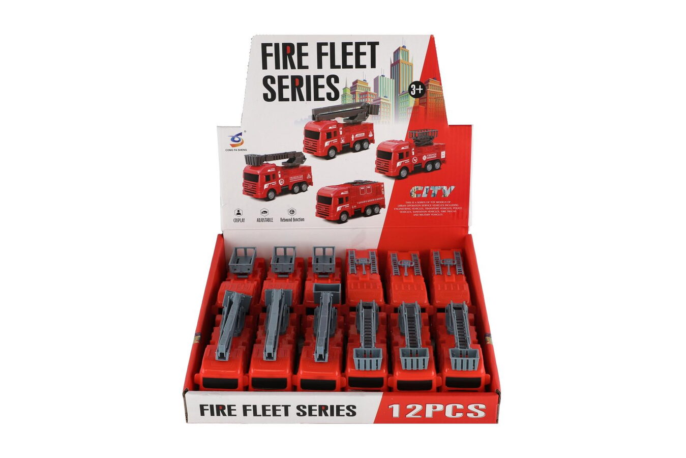 Auto hasiči plast 11cm na zpětné natažení 4 druhy 12ks v boxu