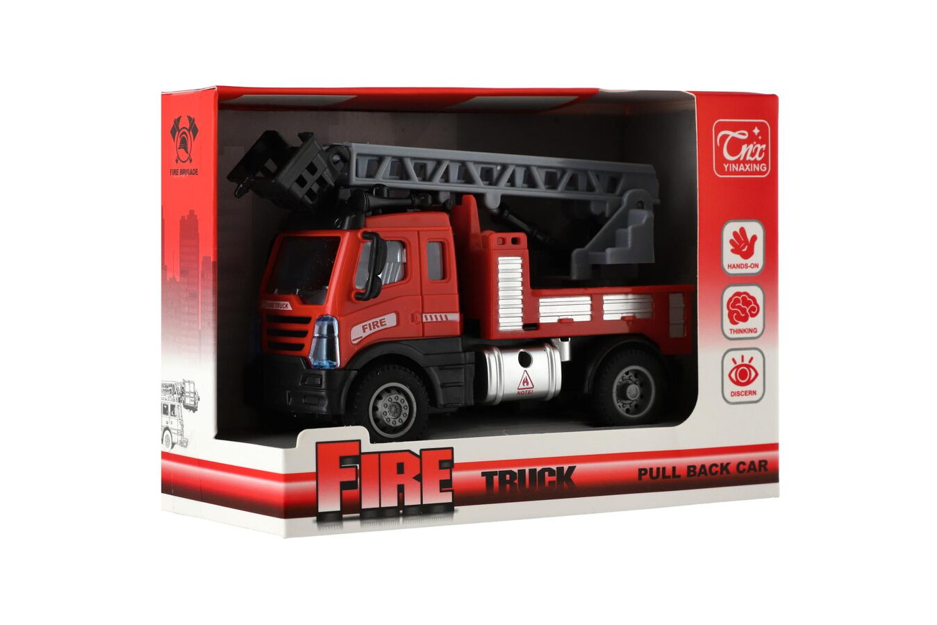 Auto hasiči se žebříkem plast 13cm na zpětné natažení v krabičce 17x12x8cm