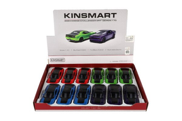 Auto Kinsmart 2023 Dodge Challenger SRT Demon 170 kov/plast 13cm 4barvy na zpětné nat. 12ks v boxu
