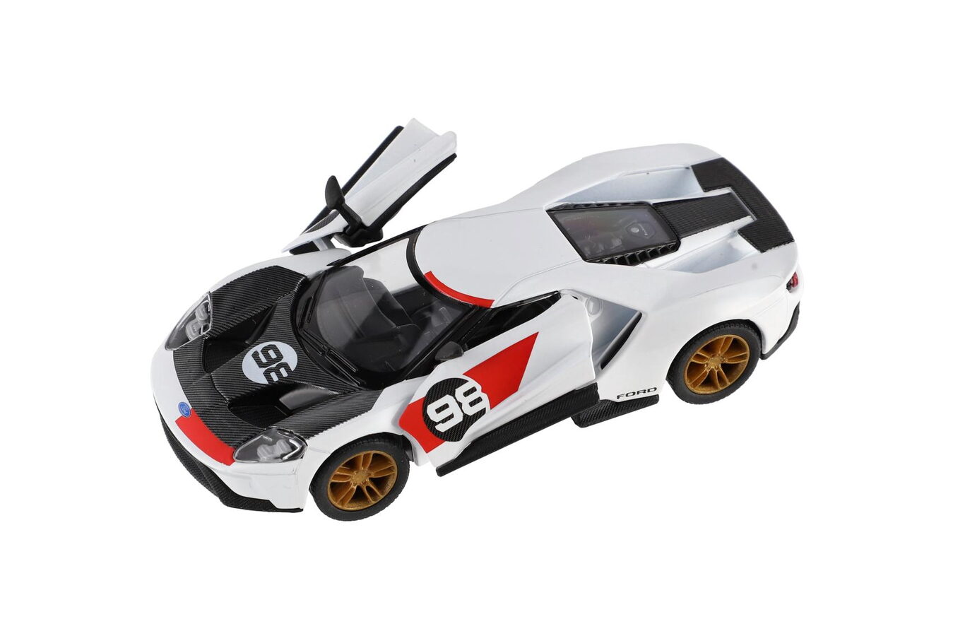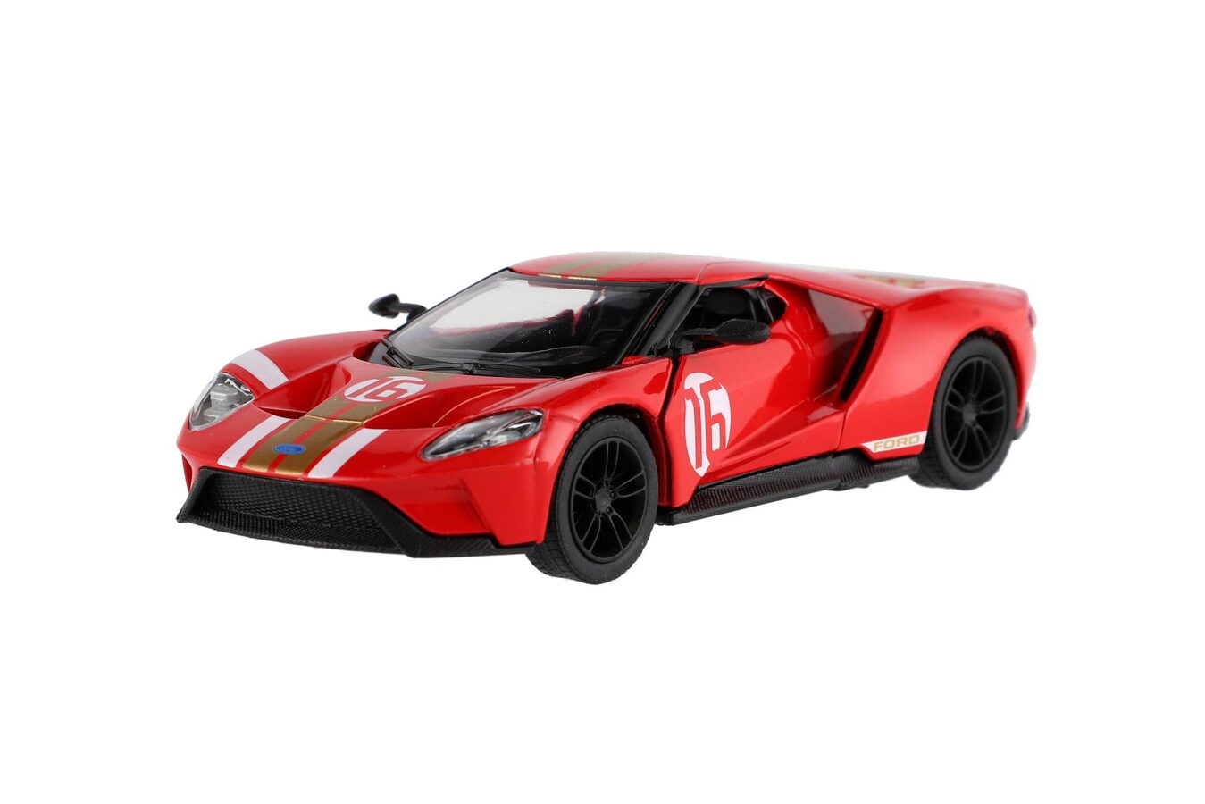 Krásný kovový model auta Ford GT 1:38. Autíčko má otevírací dveře a je na zpětné natažení. Dostupné ve třech barevných variantách.