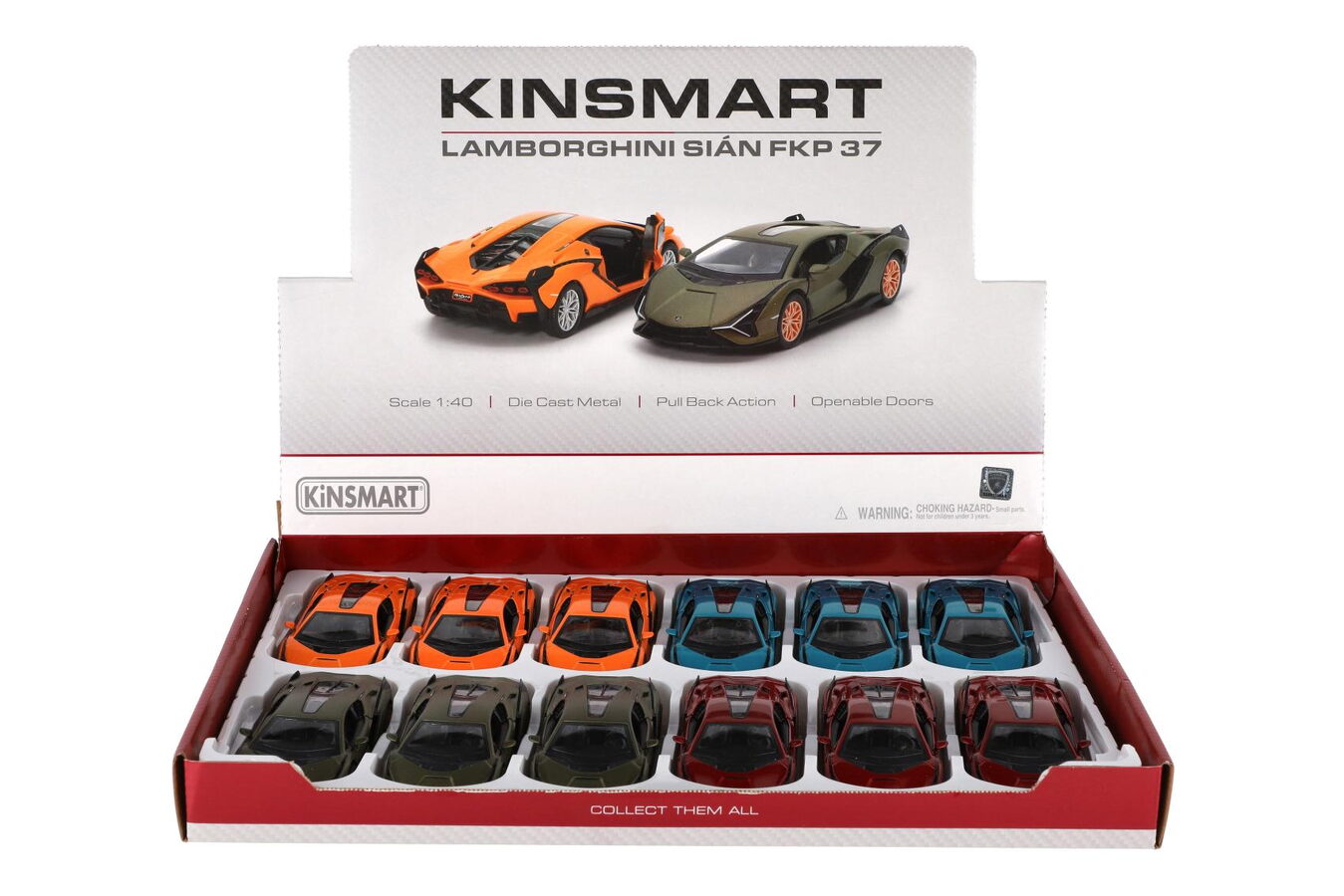 Auto Kinsmart Lamborghini Sián FKP 37 kov/plast 13cm 4 barvy na zpětné natažení 12ks v boxu
