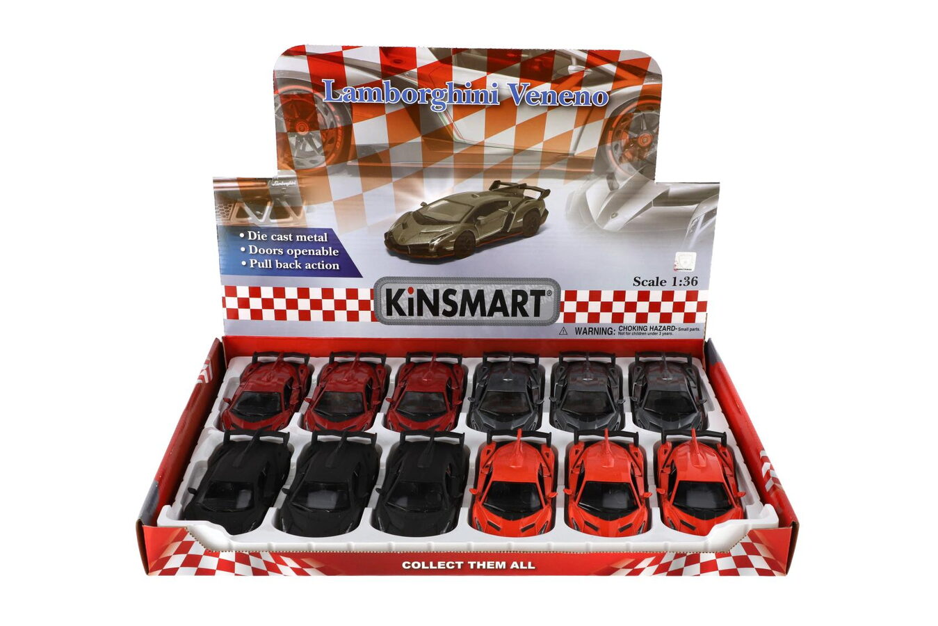 Auto Kinsmart Lamborghini Veneno kov 13cm na zpětné natažení asst 4 barvy 12ks v