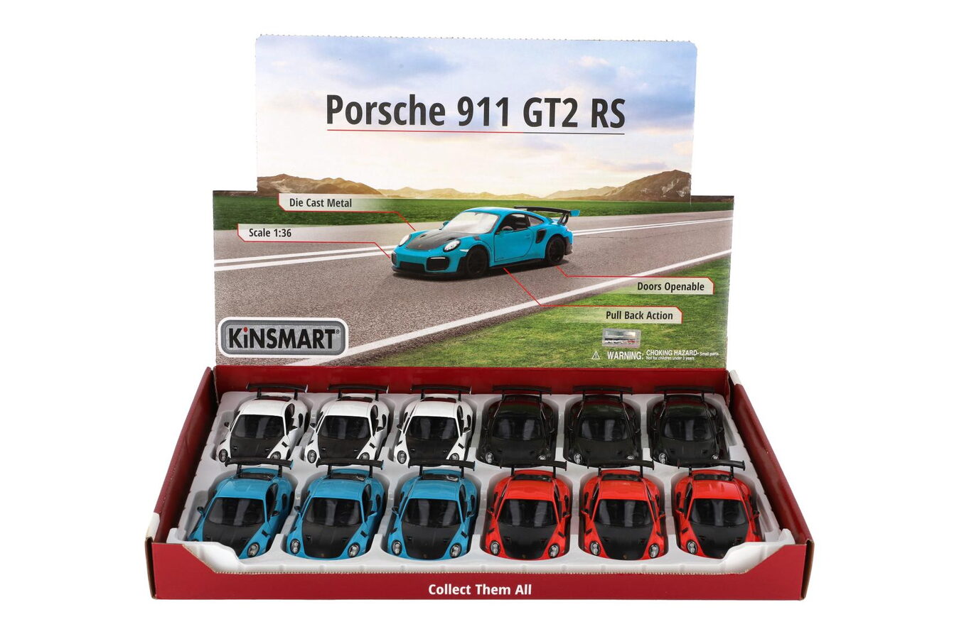 Auto Kinsmart Porsche 911 GT2 RS kov/plast 13cm 4 barvy na zpětné natažení 12ks v boxu