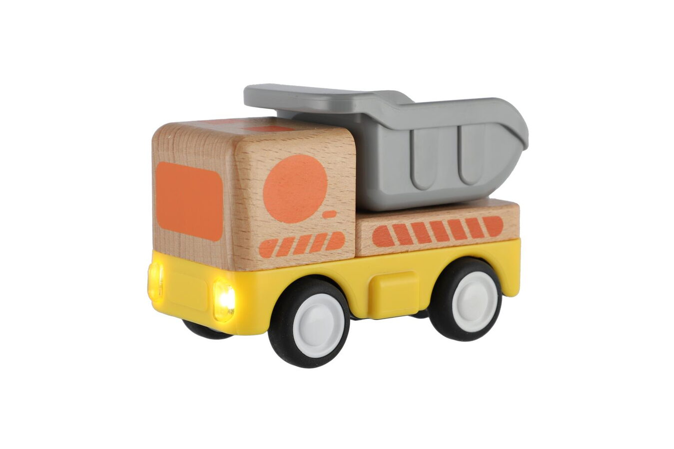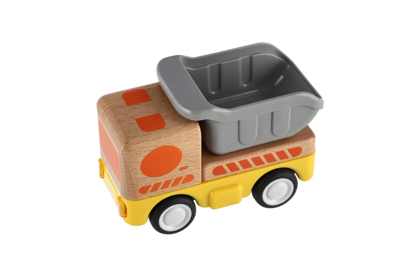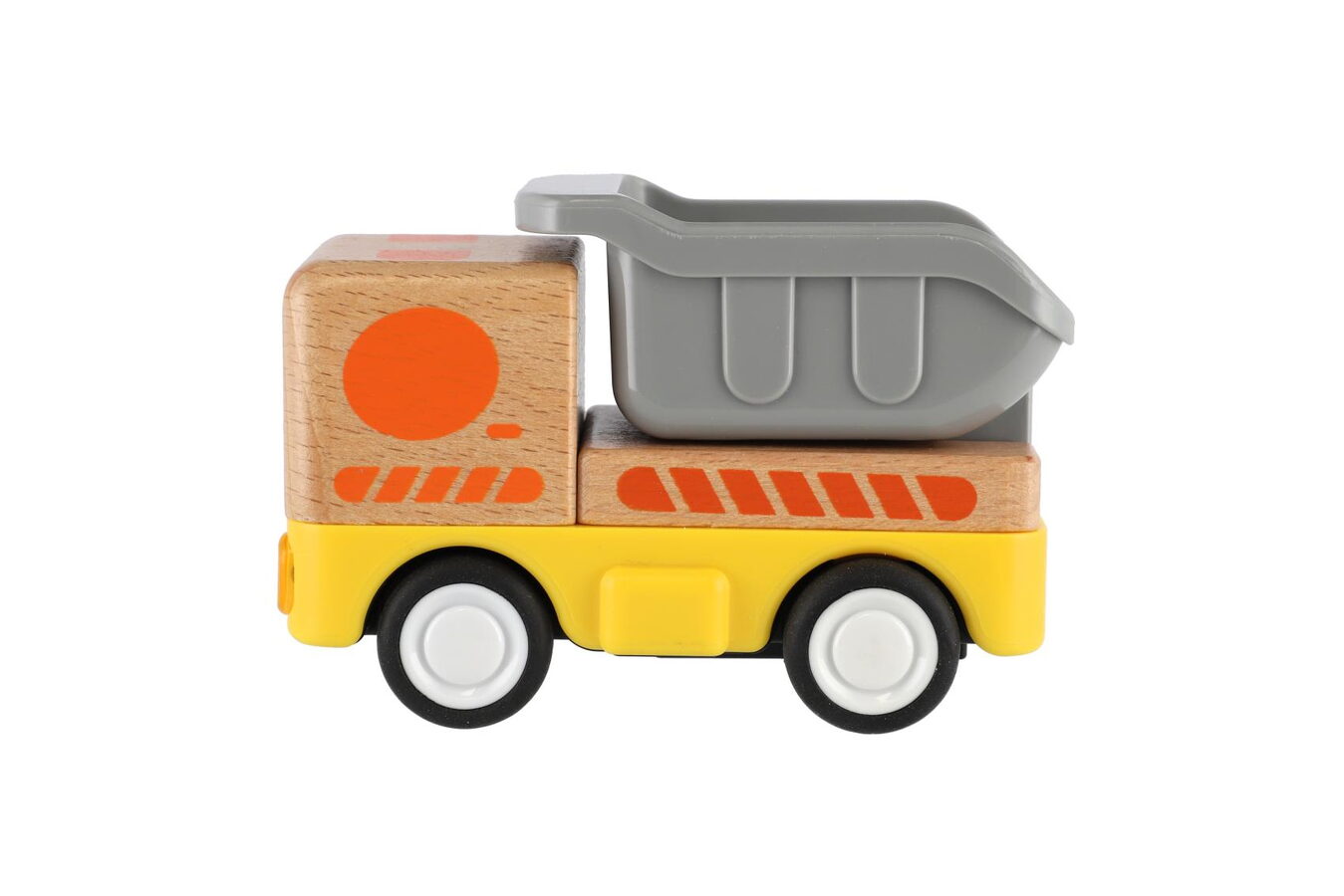 Robustní a hravé dřevěné nákladní autíčko na setrvačník, které si zamiluje každý malý řidič! Díky pohonu na setrvačník stačí autíčko jemně postrčit – a samo sviští vpřed. Kompaktní velikost je ideální pro malé dětské ruce, zatímco dřevěné provedení zaručuje odolnost a dlouhou životnost hračky.