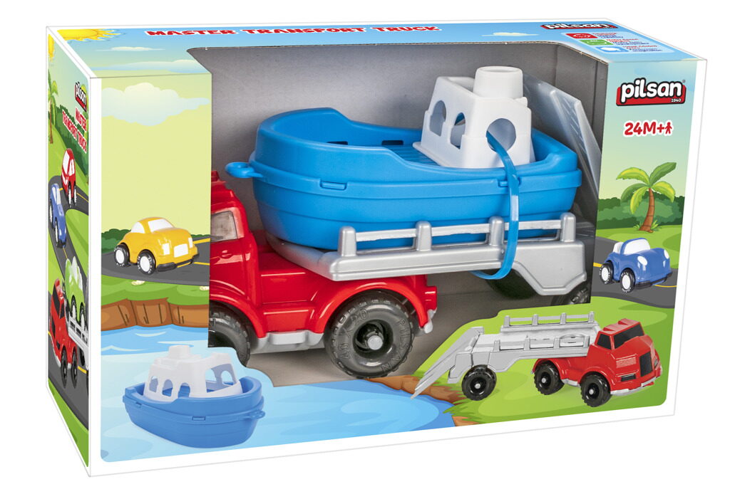 Plastové auto na písek s lodí je vhodné pro nejmenší děti od 12m+. 4 různé modely a barvy autíčka. Bezpečné a odolné. Pohyblivý zadní kryt a transportér. Ergonomický design. Vyrobeno z kvalitního plastu. Velikost auta 29×11,5×14 cm.