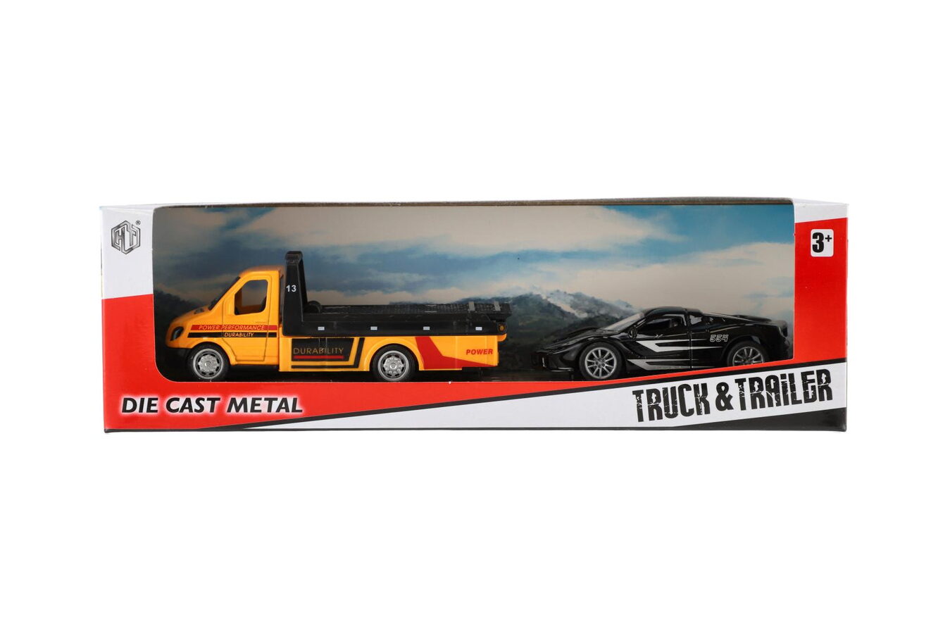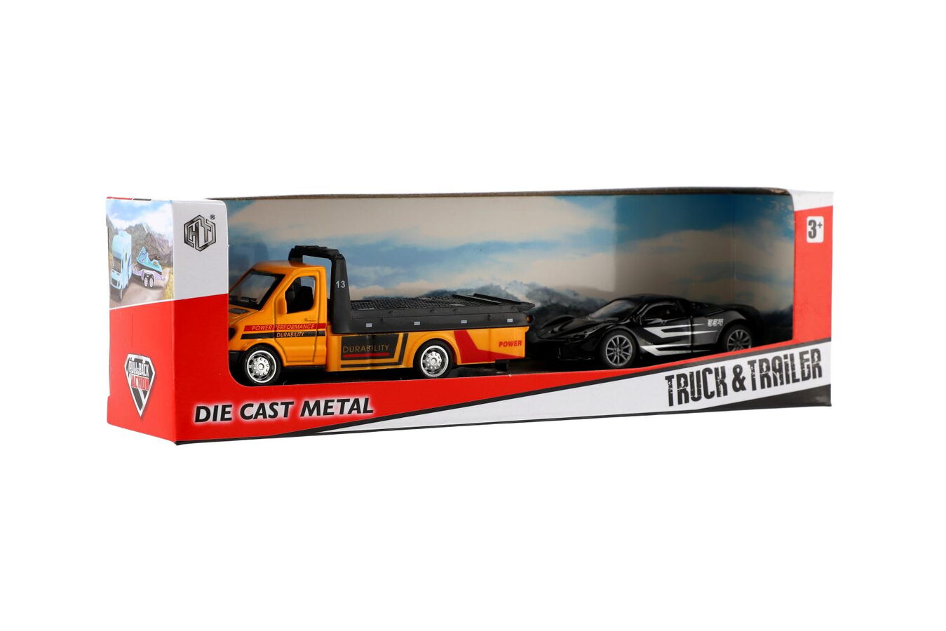 Auto odtahovka s autíčkem doplní každý vozový park. Auto je na zpětné natažení.