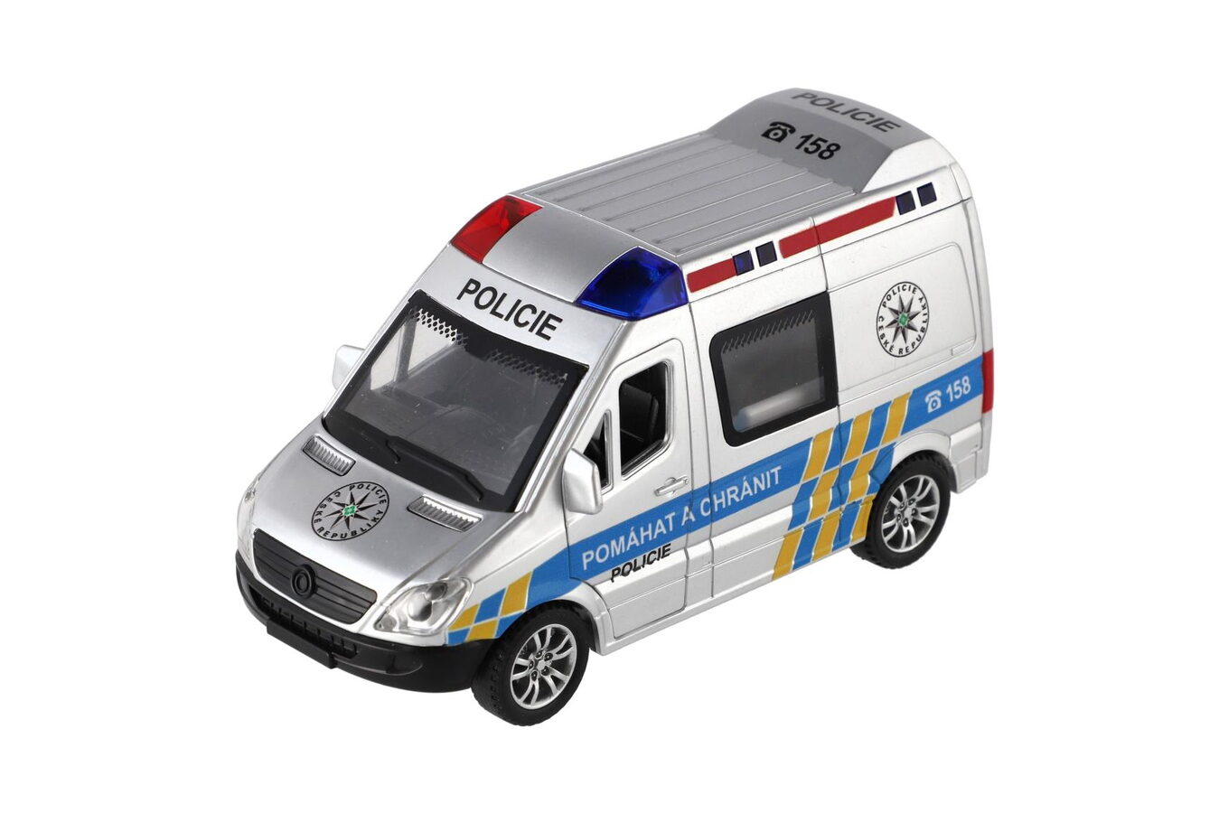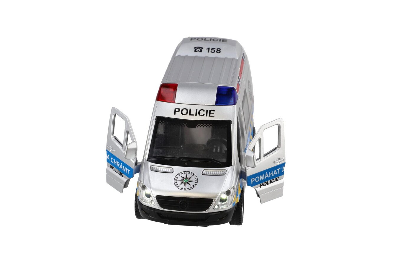 Plastové policejní auto v realistickém provedení Policie ČR je skvělou hračkou pro malé strážce zákona. Vozidlo je vybaveno světelnými a zvukovými efekty, které dodávají hře na autentičnosti, a setrvačníkovým pohonem pro snadný rozjezd. Otevírací dveře umožňují nahlédnout do interiéru a rozvíjejí dětskou fantazii při hře na policejní zásahy.