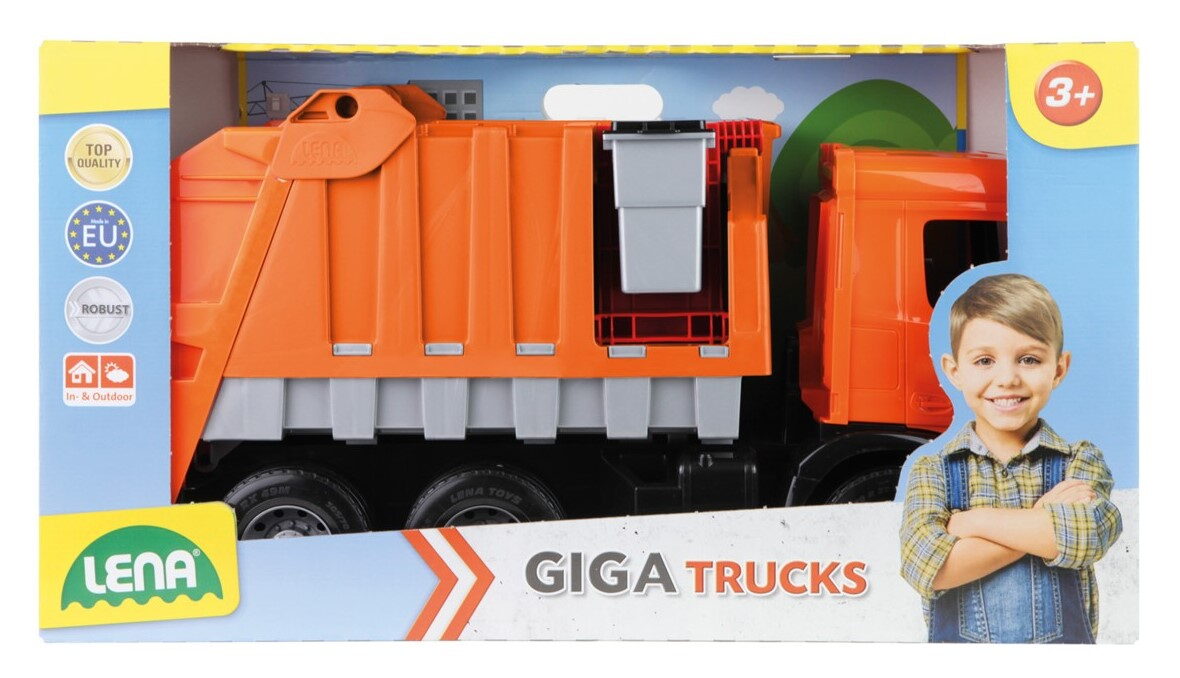 Plně multifunkční popelářské auto s odnímatelnou popelnicí a kontejnerem na kolečkách. Vyroben z kvalitního plastu. Lze použít jako odrážedlo. Statická nosnost 100kg. Plně multifunkční popelářské auto s odnímatelnou popelnicí a kontejnerem na kolečkách. Hračka velkého nákladního popelářského auta má výklopnou korbu z popelářskou nástavbou. Nástavba je vybavena výklopným zadním čelem pro snadné vysypání odpadků na skládce hraček. Nástavba je opatřena pojistkou proti vyklápění korby nákladního auta za jízdy.