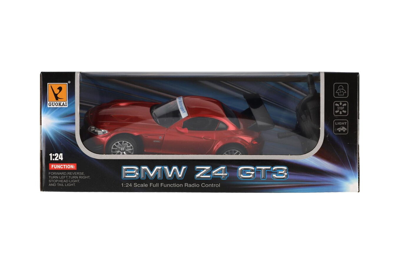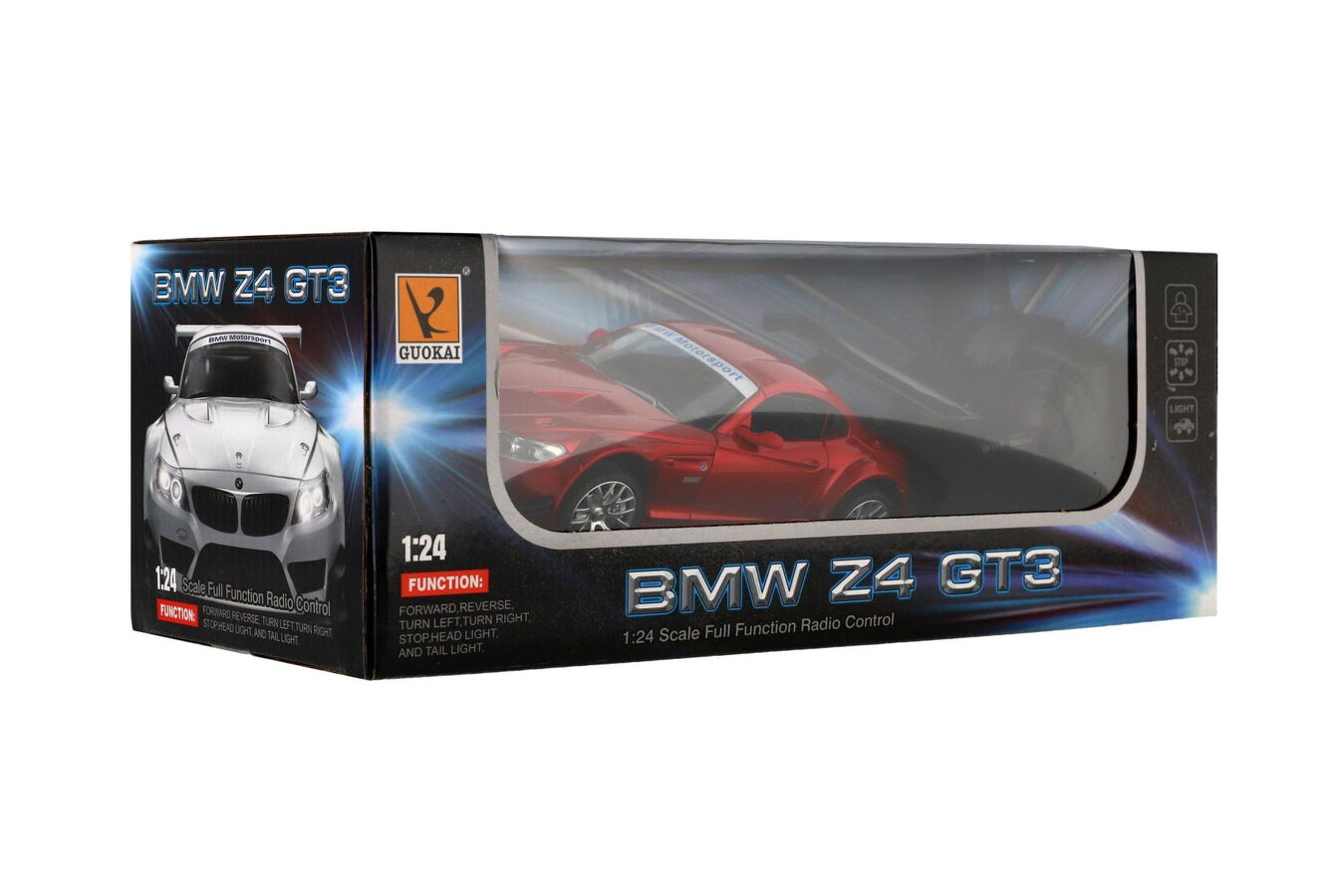 Sportovní eleganci i závodní rychlost přináší model BMW Z4 GT3 na dálkové ovládání. Vyrobeno v měřítku 1:24 s detailním provedením karoserie i interiéru, tento model potěší všechny fanoušky značky BMW i malé závodníky. Díky 2,4 GHz frekvenci je možné jezdit s více auty současně bez rušení, a funkční světla dodávají jízdě ještě realističtější atmosféru.