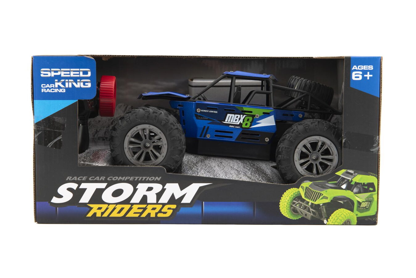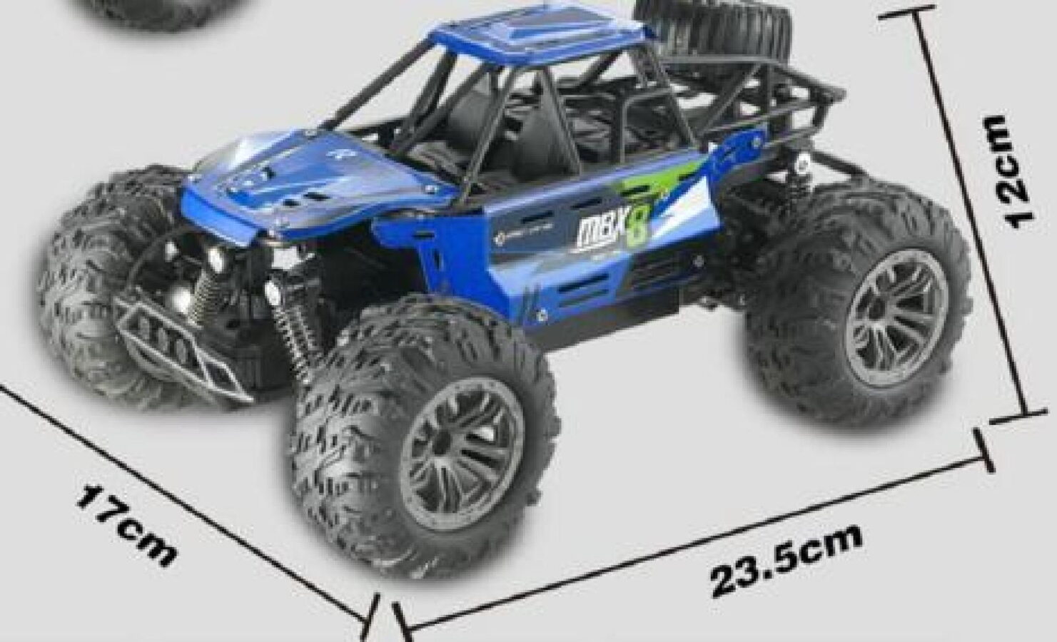 Auto RC buggy terénní modré 22cm plast 2,4GHz na baterie + dobíjecí pack v krabici 32x16x18cm