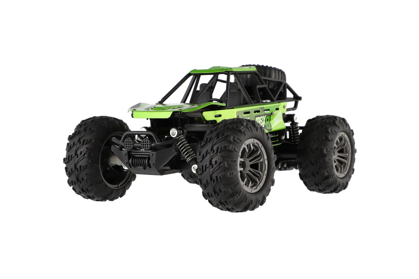 Auto RC buggy terénní zelené 22cm plast 2,4GHz na baterie + dobíjecí pack v krabici 32x16x18cm