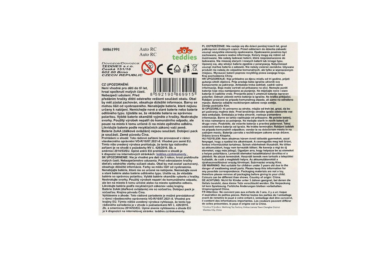 Krásné auto na dálkové ovládání, pro všechny malé závodníky, kteří milují dobrodružství a rychlou jízdu. S tímto super teréňákem budeš zaručeně v cíli jako první! Nastartuj a jeď si pro vítězství! To je rychlost! Hlavně ať se závod obejde bez nehod! Přepínač ON/OFF ze spodní strany auta. USB pro nabíjení auta, 2x AA baterie nejsou součástí balení (ovladač). Frenkvence 27 MHz.