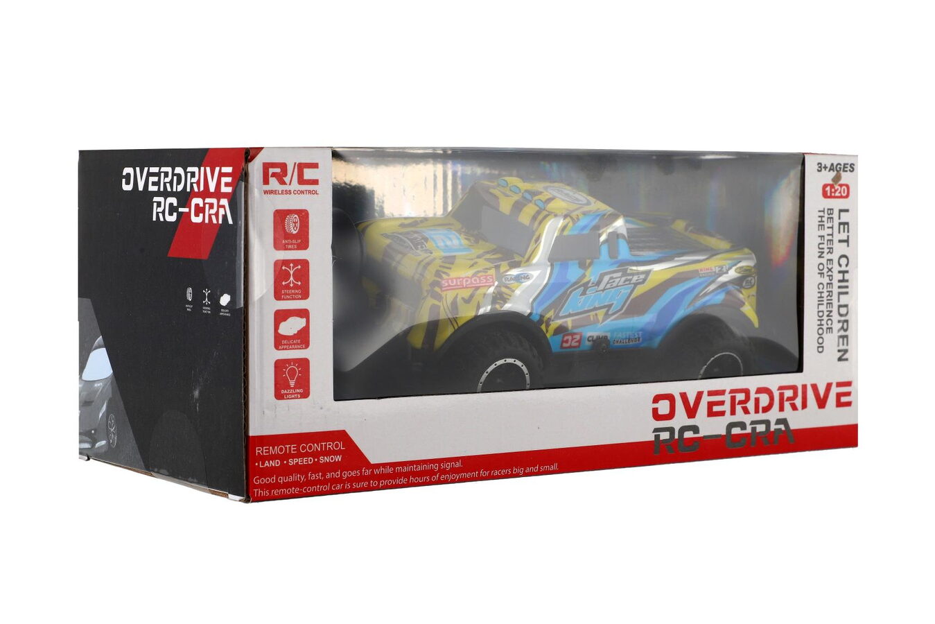 Terénní autíčko na dálkové ovládání musí doma mít každý malý závodník. Tento kvalitní model terénního auta na dálkové ovládání jezdí všemi směry. Zajisté nadchne všechny automobilové fanoušky. Stačí šlápnout na plyn a dojet si pro vítězství! Balení obsahuje také dobíjecí pack. Baterie 2x AA (dálkové ovládání) nejsou součástí balení.