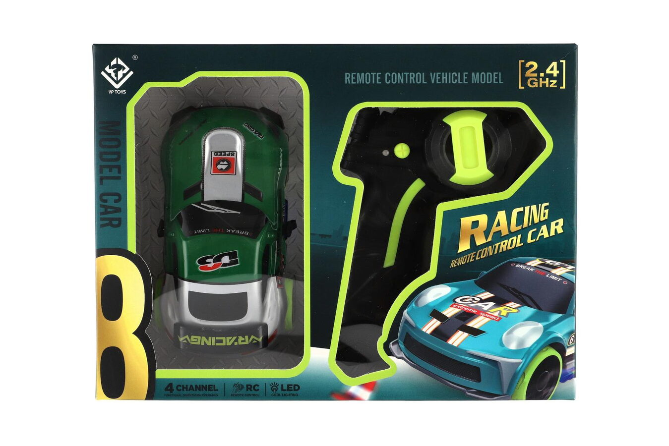 Auto RC závodní 2,4GHz plast 12cm na baterie se světlem zelené v krabici 23x17x5,5cm