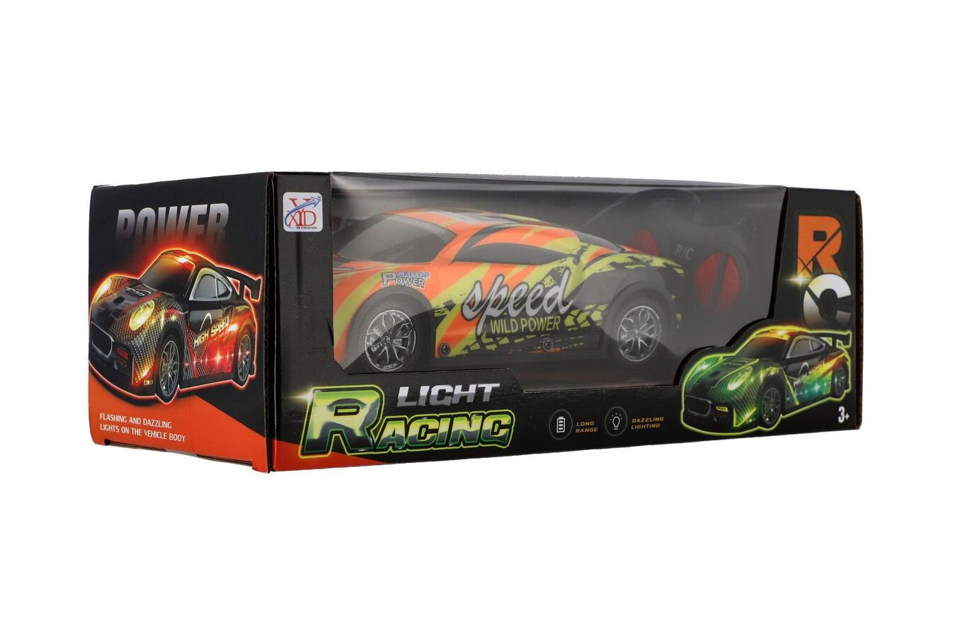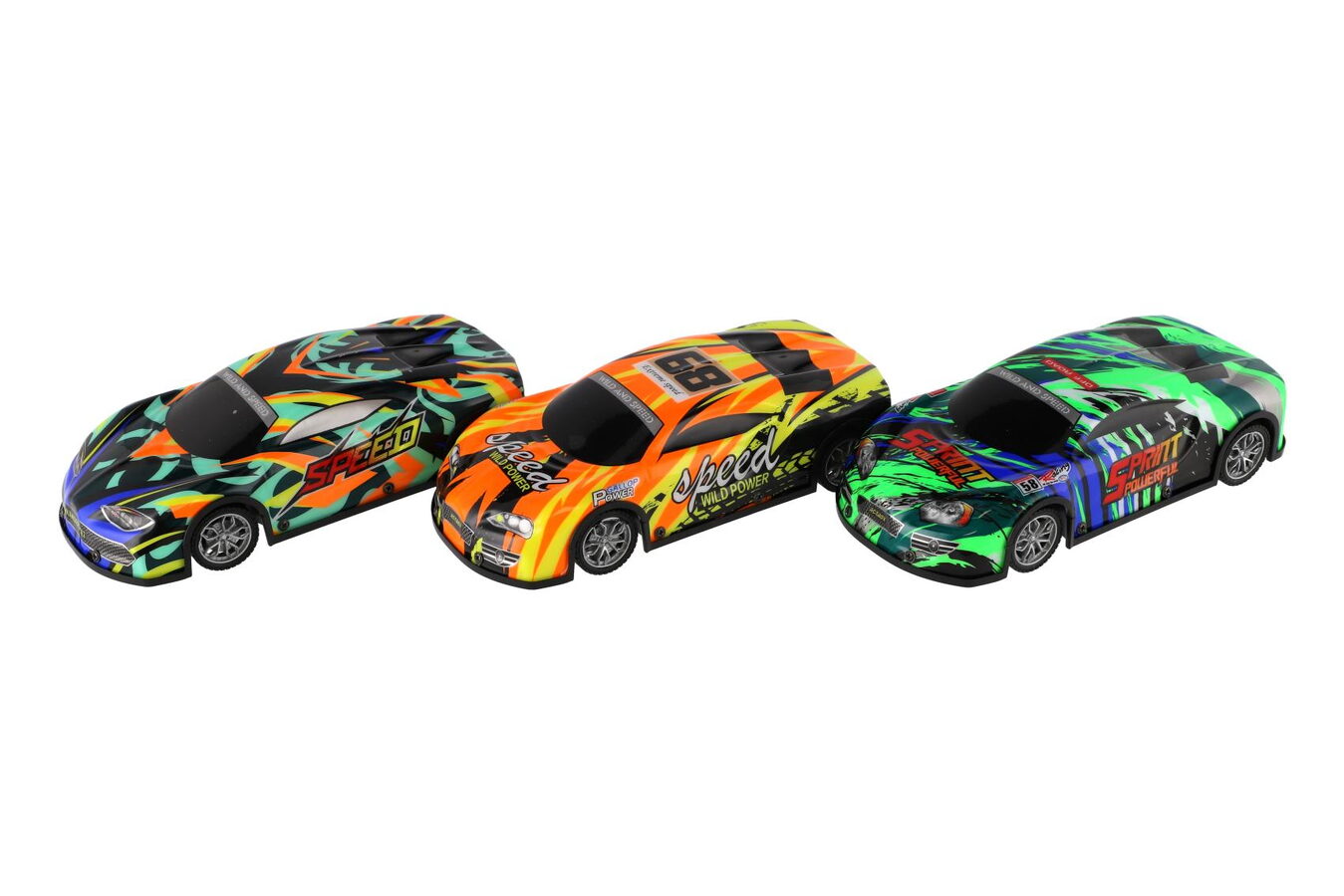 Auto RC závodní 27MHz plast 20cm na baterie se světlem 3 barvy v krabici 27x10x13cm
