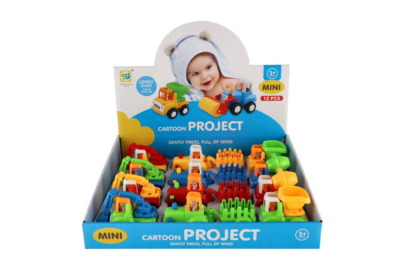 Auto stavební a zemědělské plast 10-16cm na setrvačník mix druhů 12ks v boxu