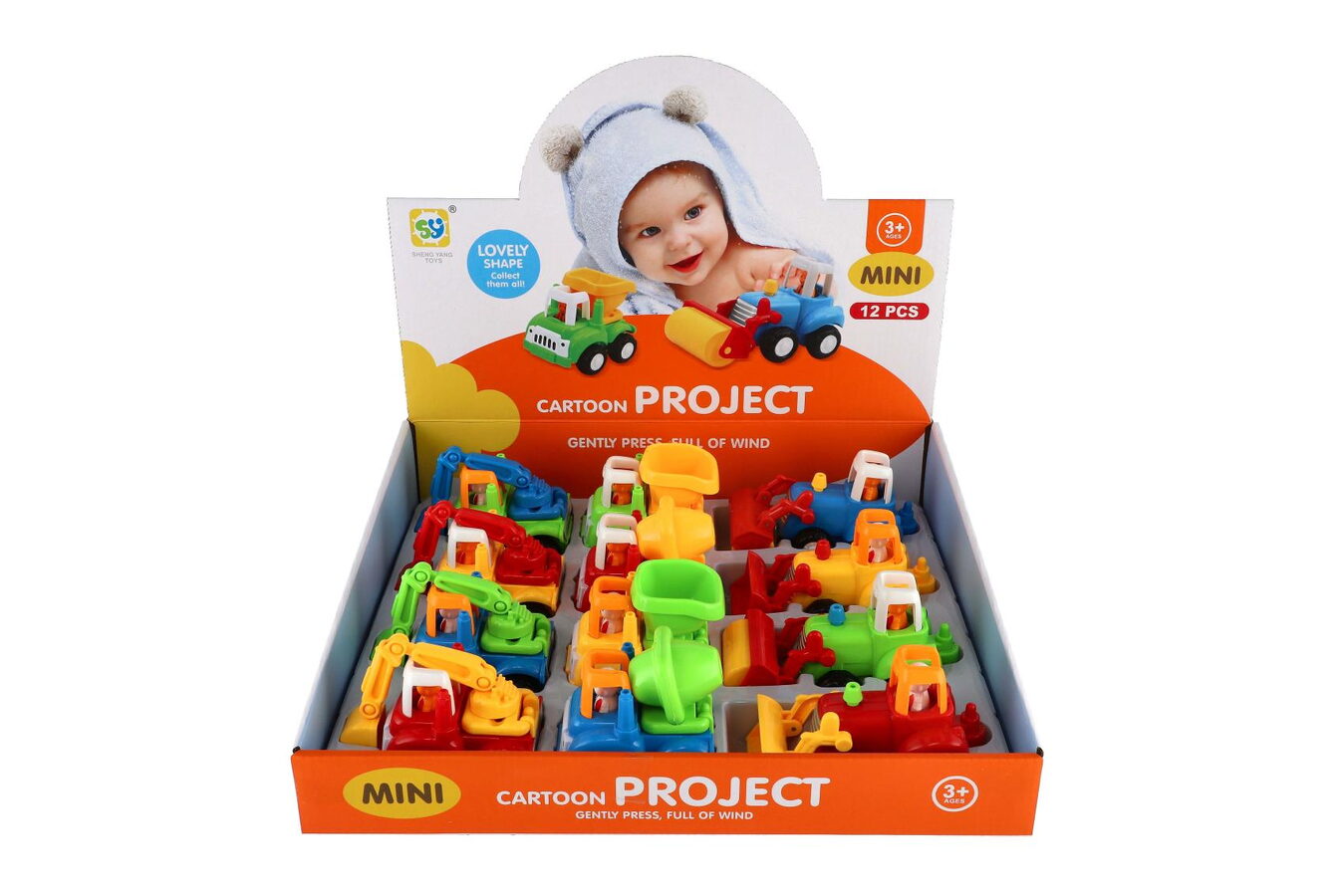 Auto stavební plast 10-12cm na setrvačník mix druhů 12ks v boxu