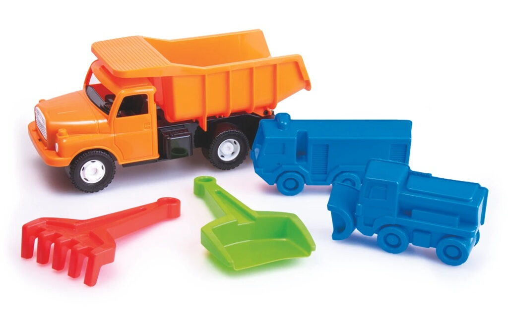 Vydejte se na pískoviště v plné výbavě, a to s legendární Tatrou 148 s korbou plnou hraček na písek. Dětský náklaďák v nesmrtelném oranžovém provedení veze nejen lopatku a hrábě, ale i dvě formičky ve tvaru míchačky a dalšího nákladního auta.