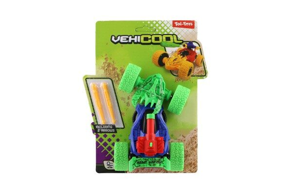 Auto terénní střílecí plast 15cm + 2 šipky na setrvačník 4 barvy na kartě